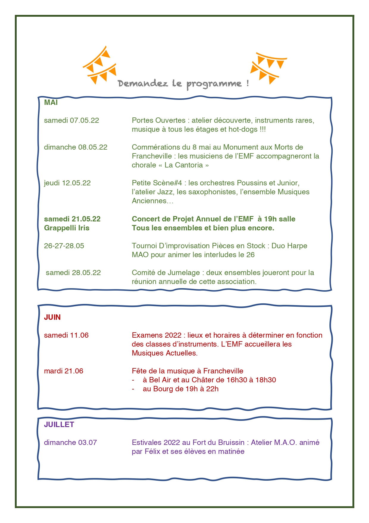 Le mois de juin s'annonce riche à l'EMF! P'tites Scènes, Concerts, Découvertes, Fête de la Musique,...